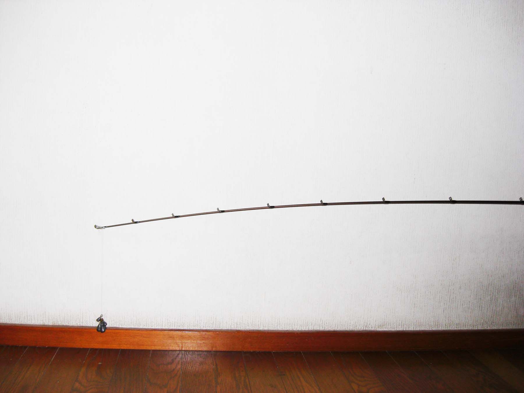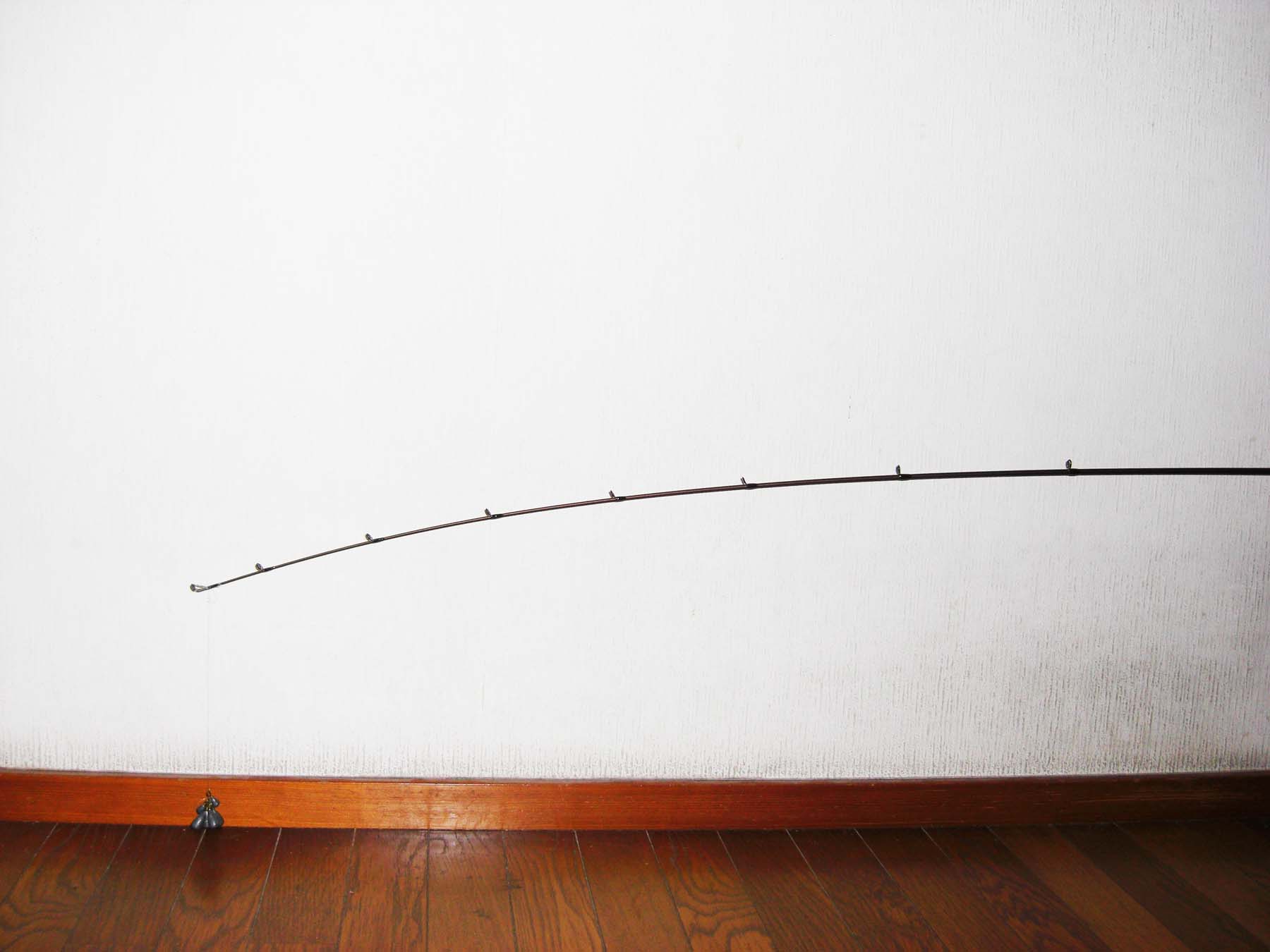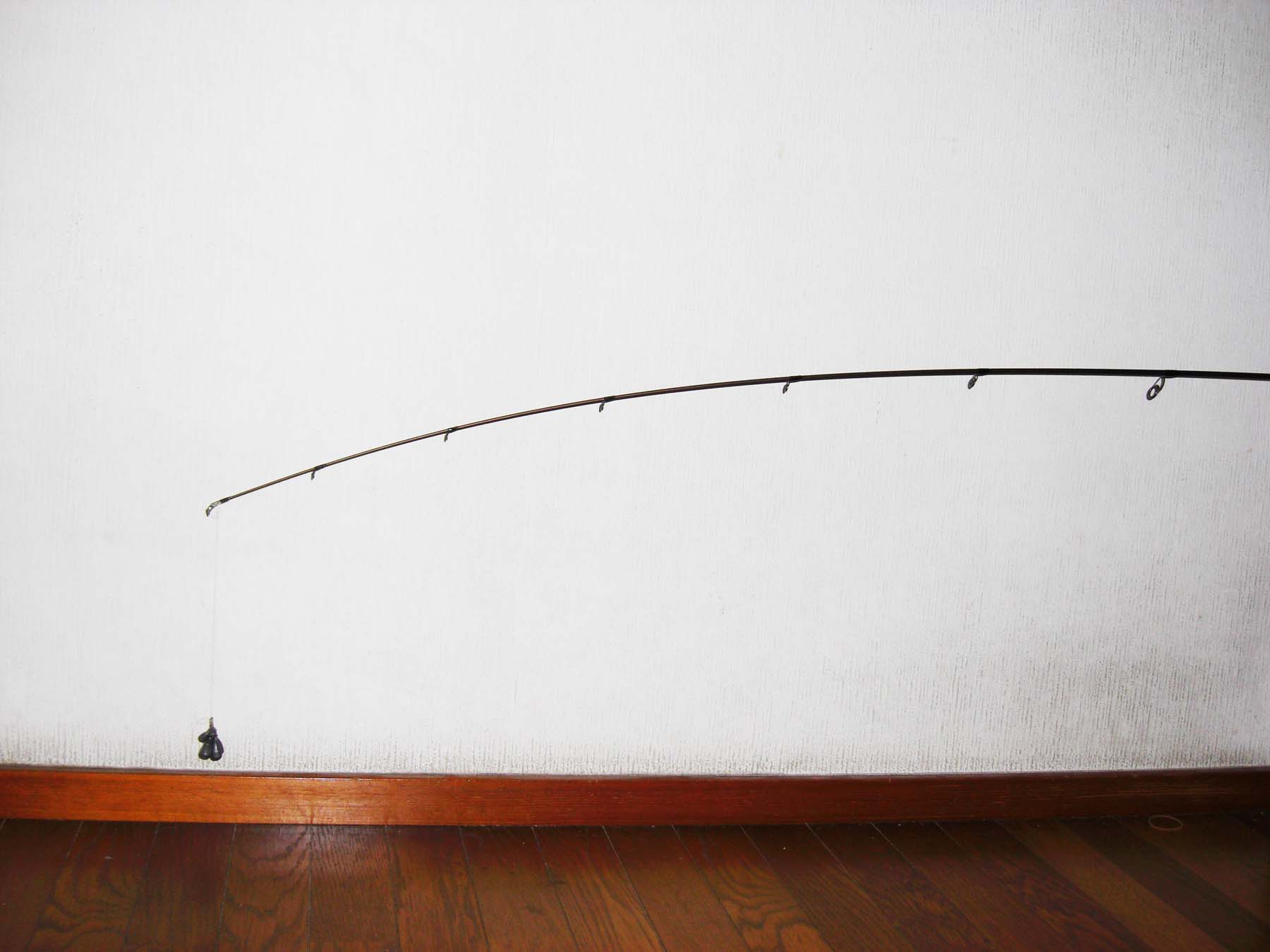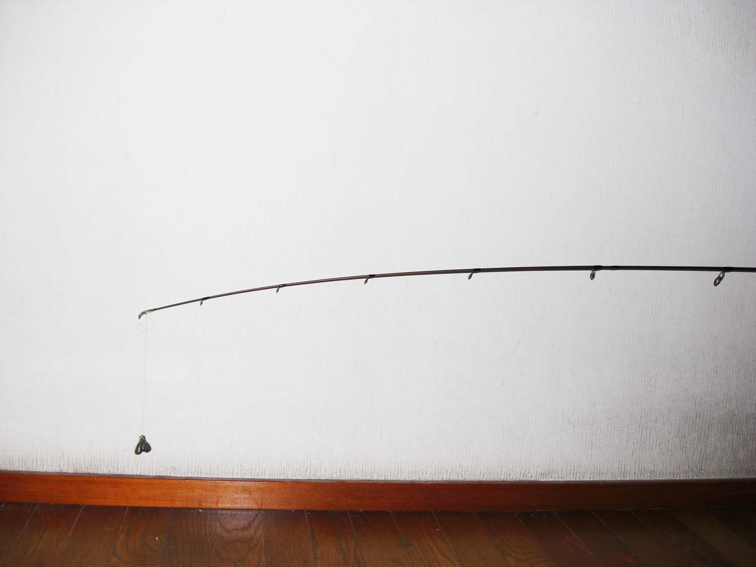 トップから5ヶ目のガイド位まで曲がります。(トップから約70cm位)張りとしなやかさをあわせもつティップは深く曲がり、小さなバイトを感じ取れます。さらにミノ−、ポッパ−等の軽量プラグにもよいでしょう。