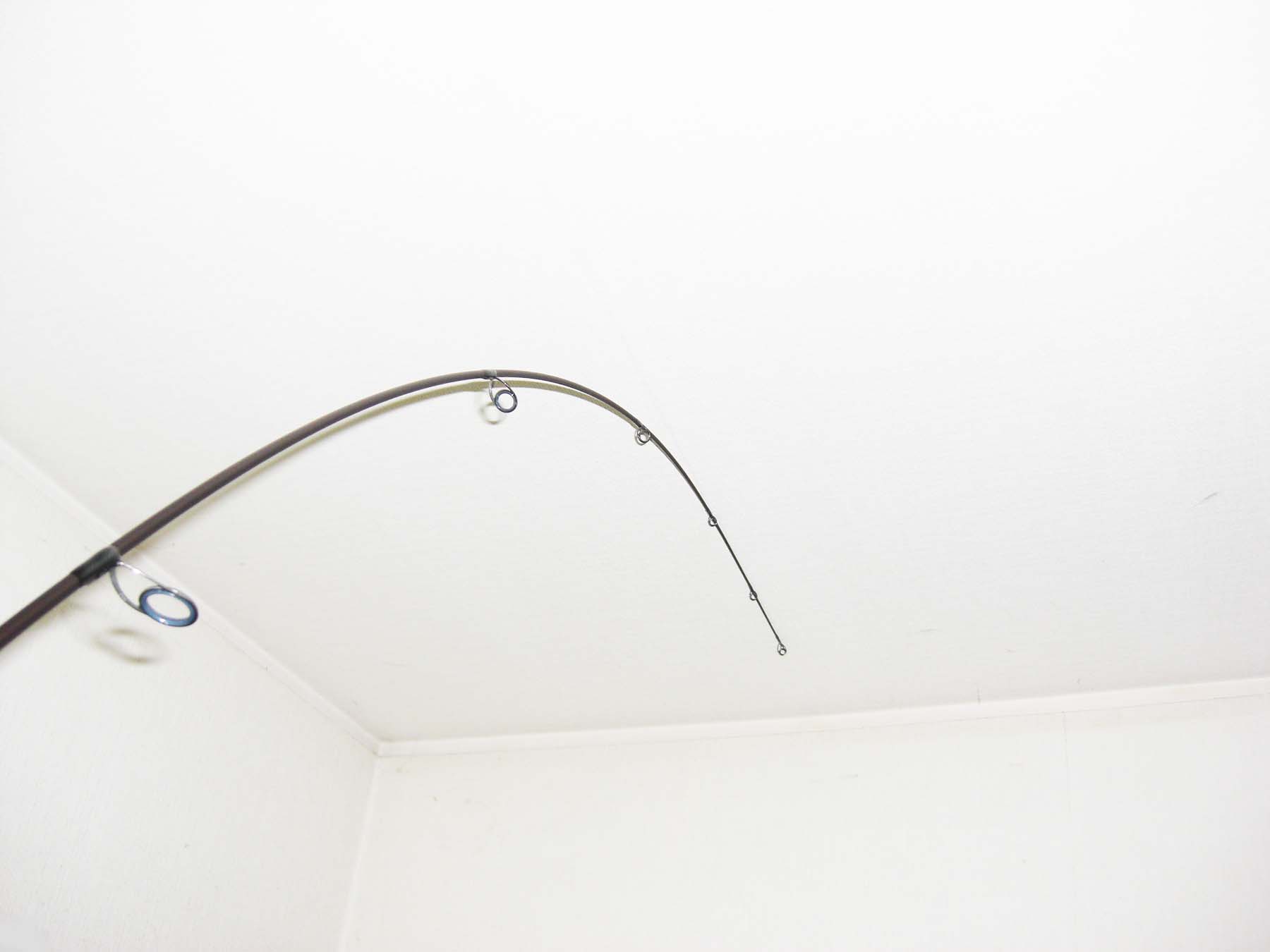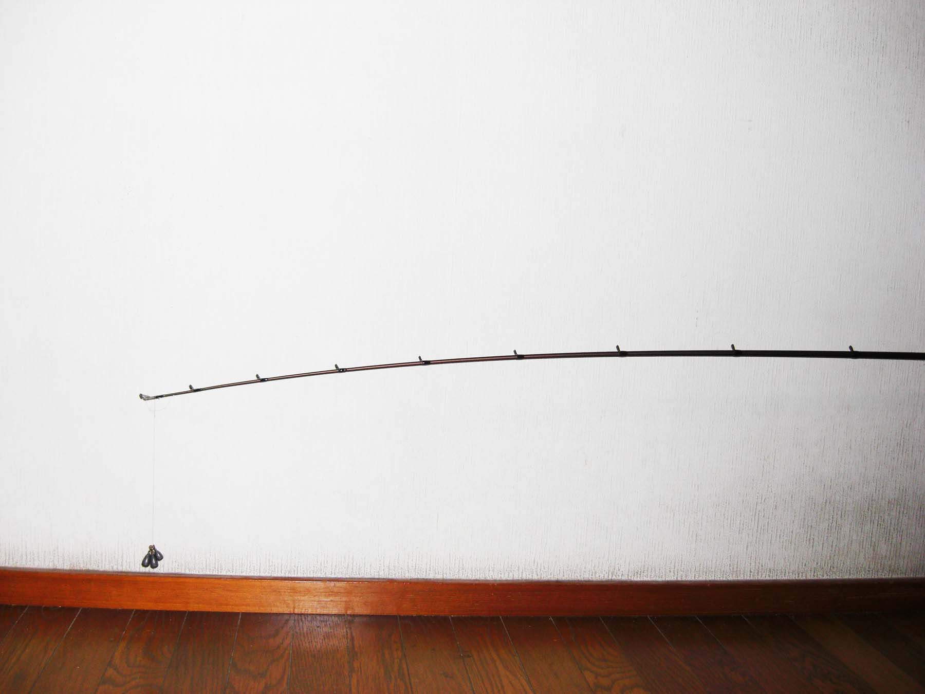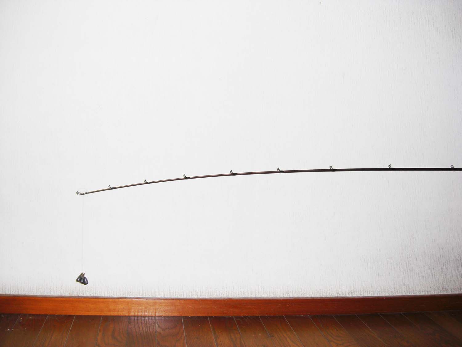 トップから5ヶ目のガイド位まで曲がります。(トップから約70cm位)張りとしなやかさをあわせもつティップは深く曲がり、小さなバイトを感じ取れます。さらにミノ−、ポッパ−等の軽量プラグにもよいでしょう。