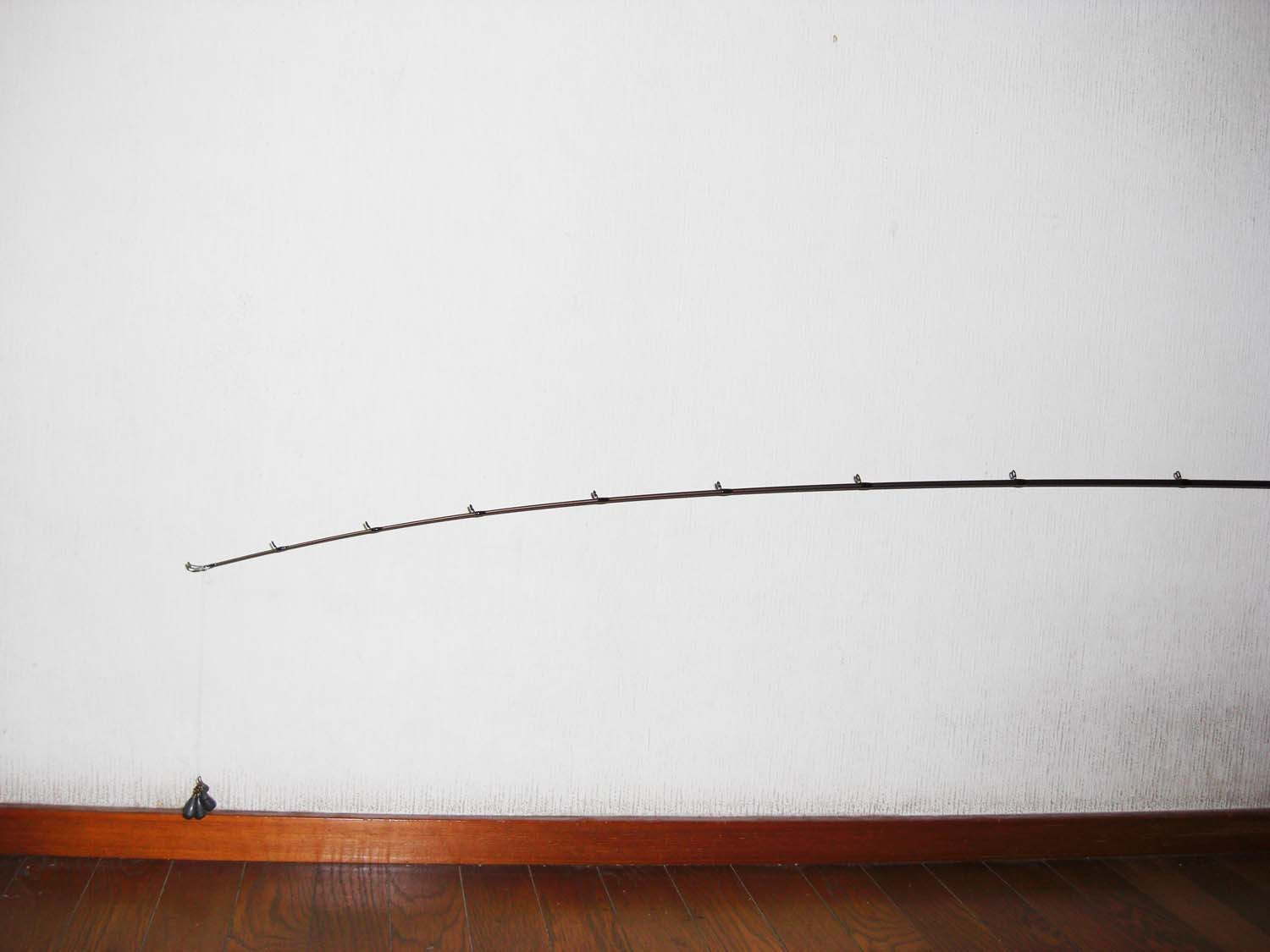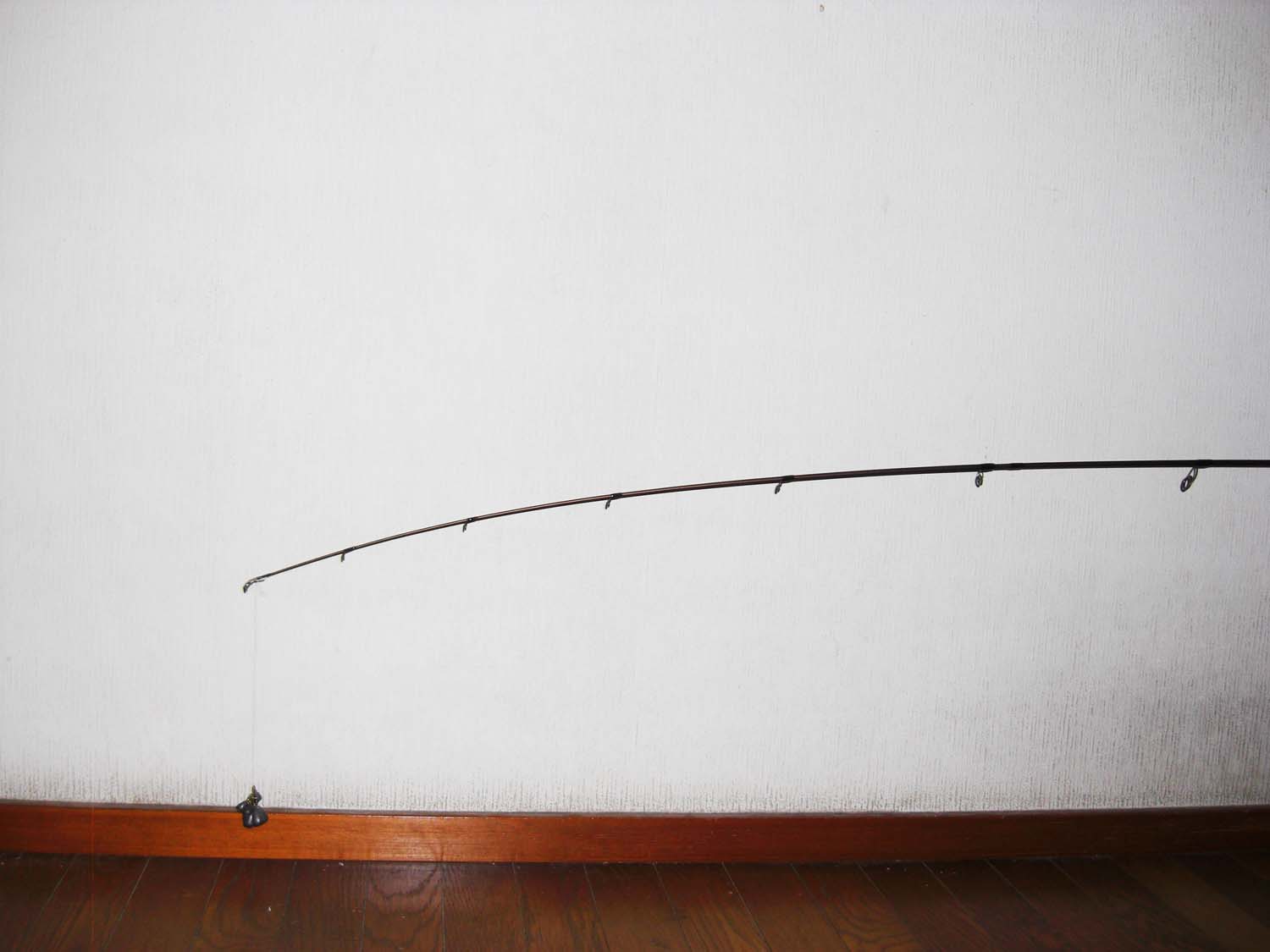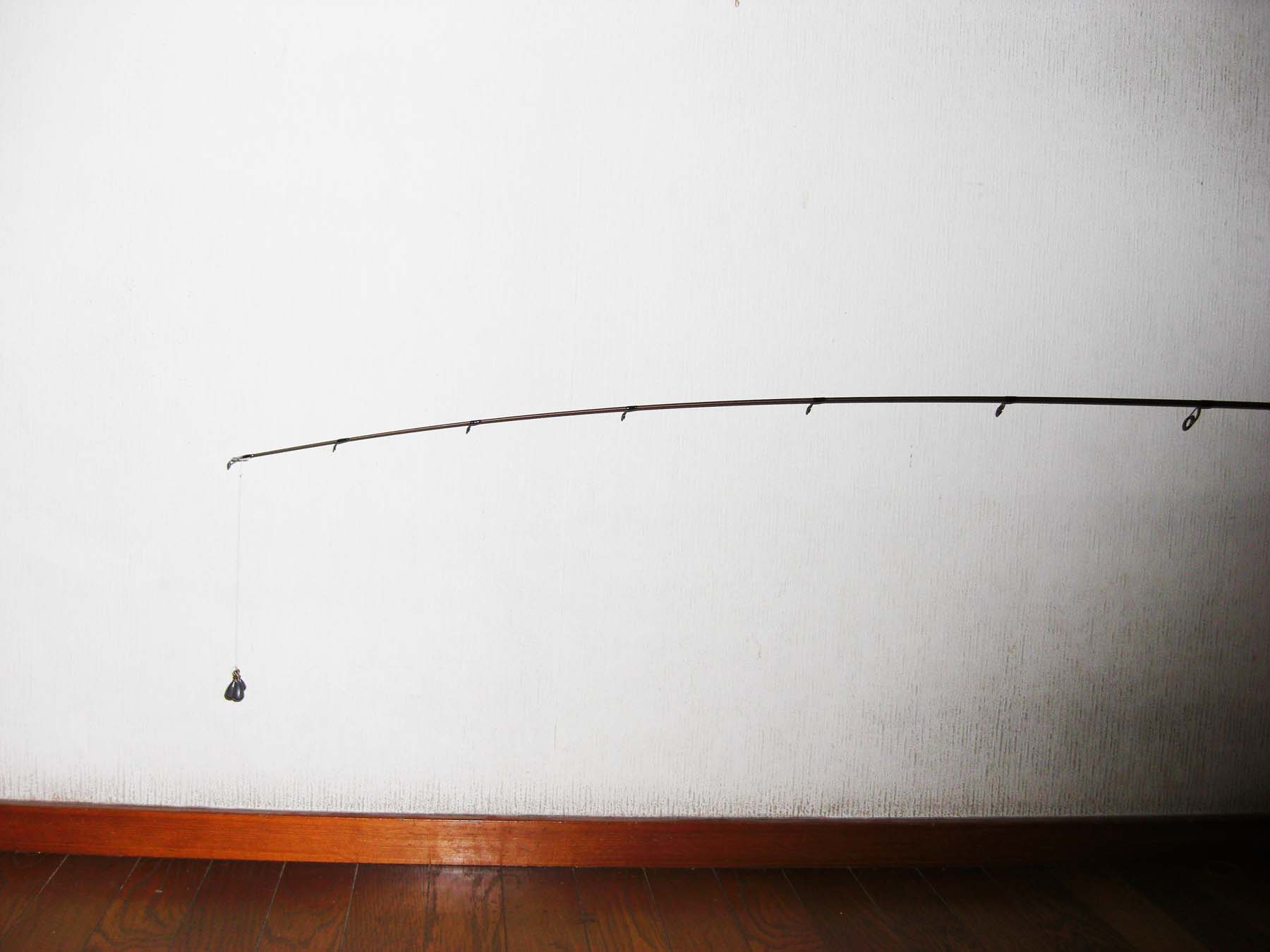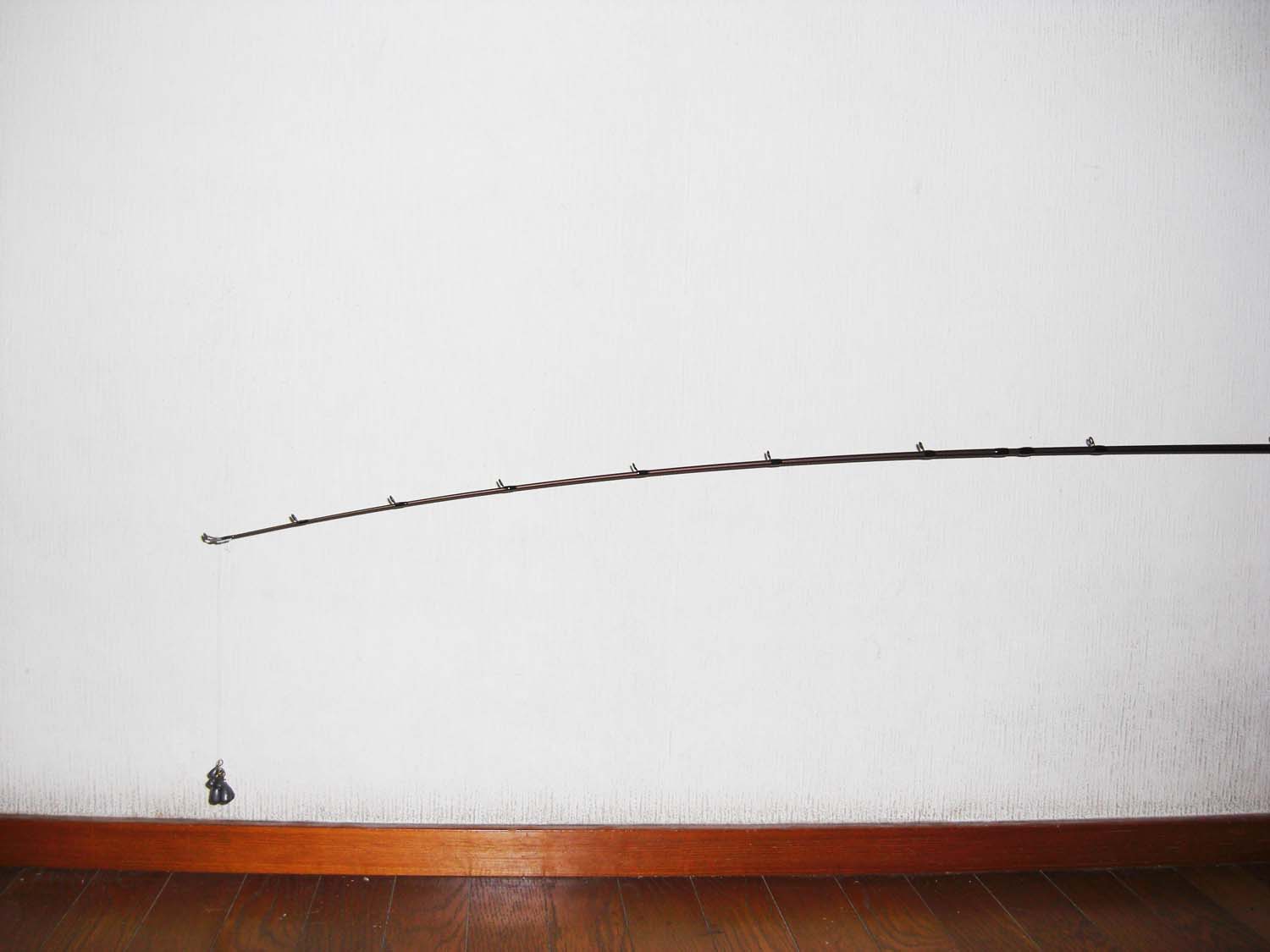 トップから5ヶ目のガイド位まで曲がります。(トップから約70cm位)張りとしなやかさをあわせもつティップは深く曲がり、小さなバイトを感じ取れます。さらにミノ−、ポッパ−等の軽量プラグにもよいでしょう。